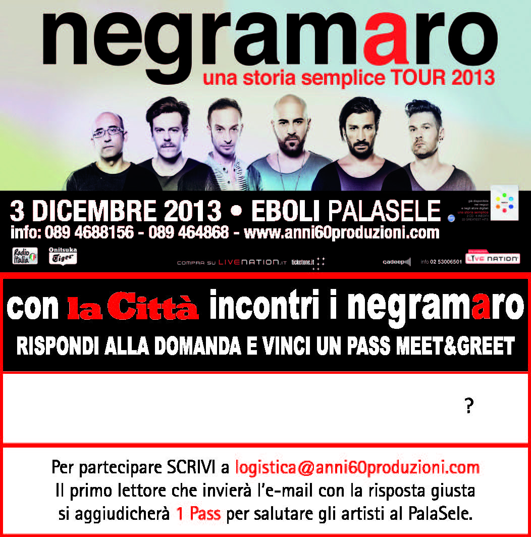 CON "LA CITTÀ" INCONTRI I NEGRAMARO AL PALASELE!